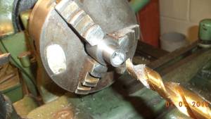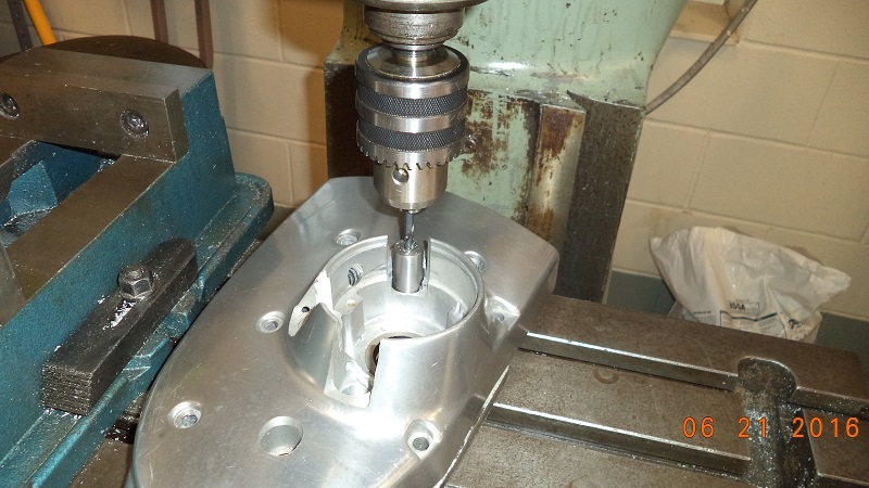 • Exact center on the pinion shaft with a 5/8“ bit but later had to enlarge to 11/16” due to the pinion shaft being almost 5/8“ (.5615” actual).