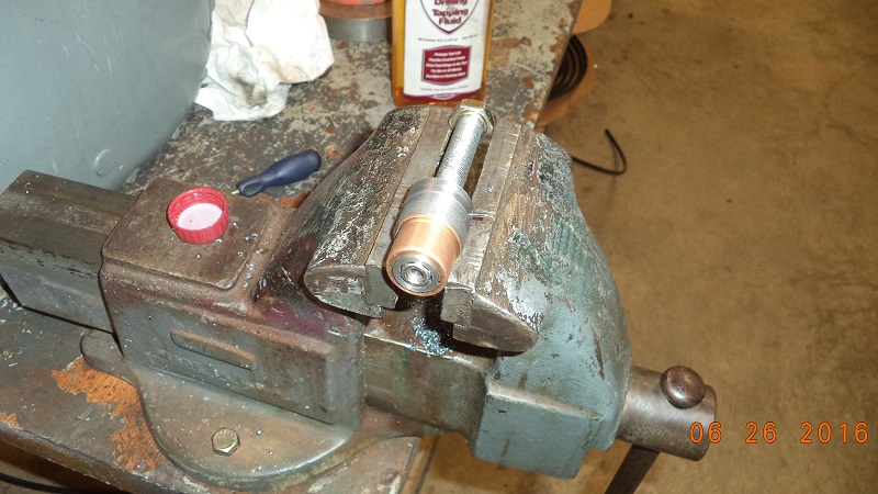 • Then, took some big pliers and turned several times to open up the hole to allow the reamer to turn easier until I could use just a rag in my hand turning until the reamer spun around freely. With an 8 flute reamer, I may have been able to skip this step.