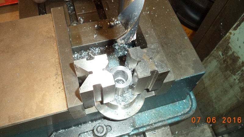 1-1/2“ steel is the smallest I've got right now so I've been spending a lot of time turning it down. I did get the mounting bolts drilled in the plate.