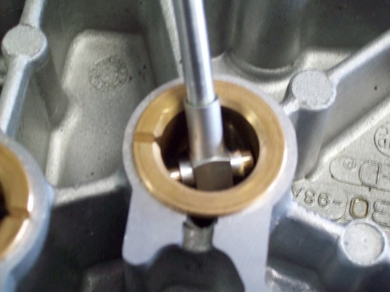 • Here's the bushings after reaming. The clearance did squeeze in .015” when the bushings were installed. That also coincides with the standard pre-ream bore size. 11/16“ (0.6875”) reamed bore yields 0.0075“ clearance (service limit of 0.003”).