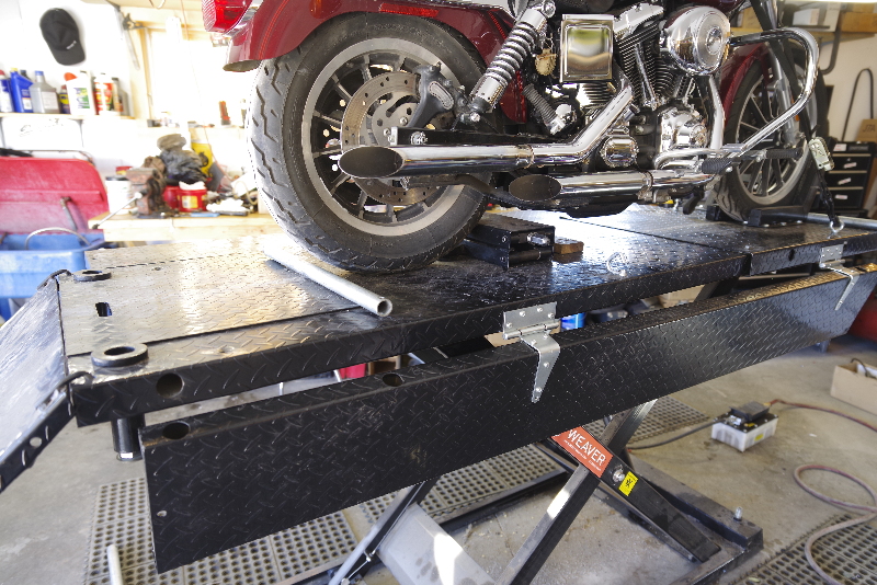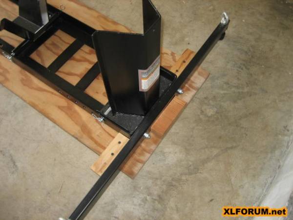 | Built from a combination of these two inspirational 'How To' pages: Sportster Adapter for Craftsman Lift by Crazy Steve and Hold Down Strap Modification for Craftsman Lift by Lew Shaw. |