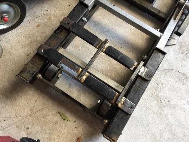 The one below was trimmed a little with a piece of box section tubing welded on it and fabricated cradles.