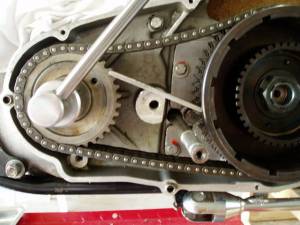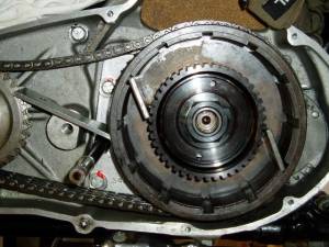 A reversible impact wrench has been used successfully to remove both the engine sprocket and the clutch basket nut.