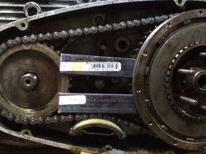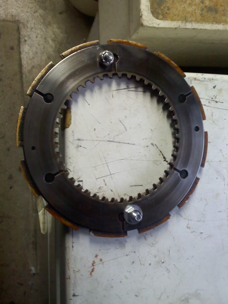 | Two more little pieces to jam between the inner and outer clutch drums, with the main sprag still in place. You have to be careful to keep them all in position when tightening. 6) | ||