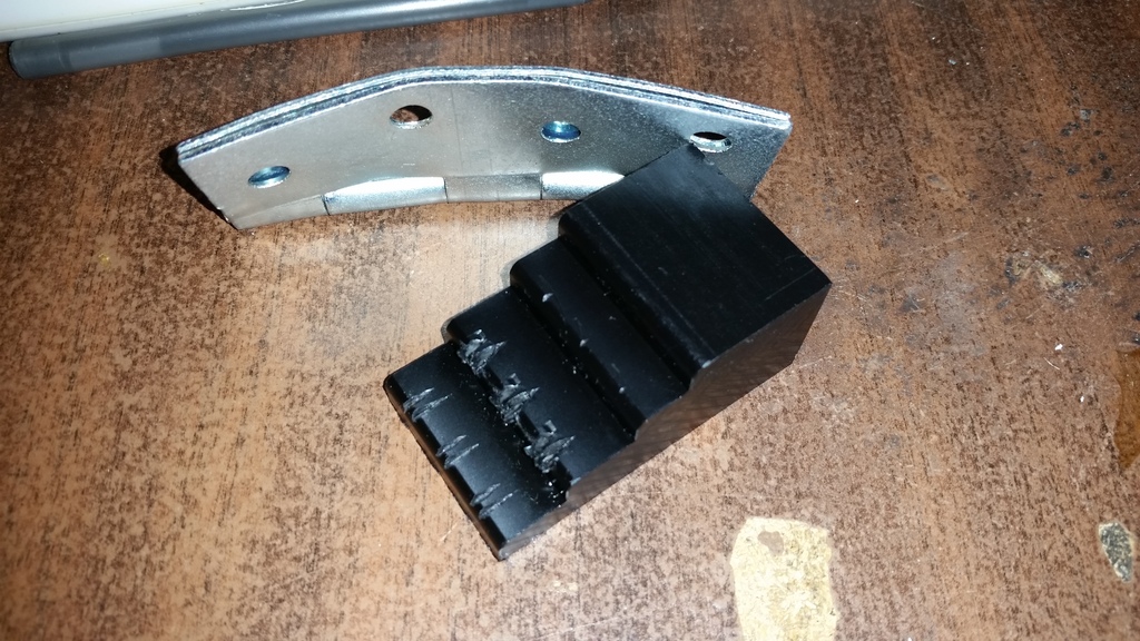 | A heavy duty 4“ door hinge works well. A cheap 4” door hinge bends like a pretzel. The derilin block just gets shredded up. But, the heavy duty 4“ hinge works great. 11) | A closed 4” BRASS hinge also works well. 12) |