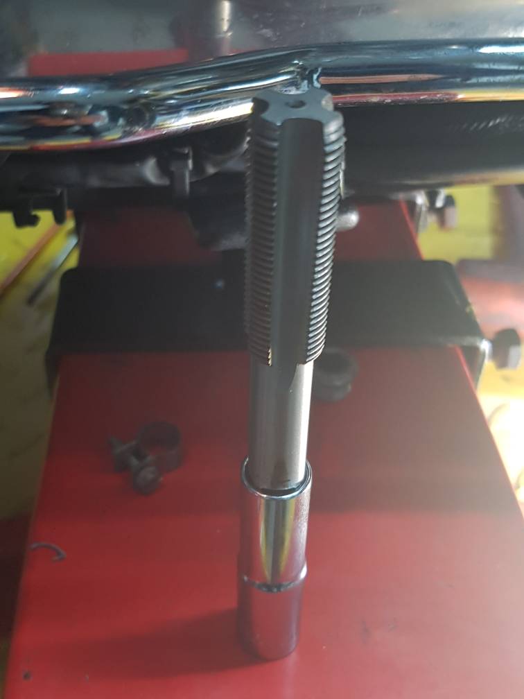 • An alternative tap extension can be fashioned with a 3/8“ socket extension turned backwards so the internal square fits over the tap and the external square will allow accept a standard tap wrench.