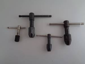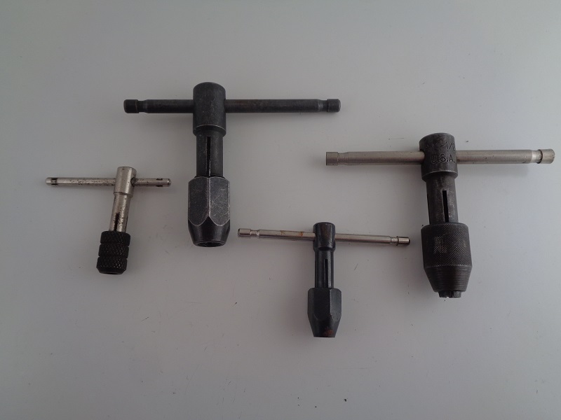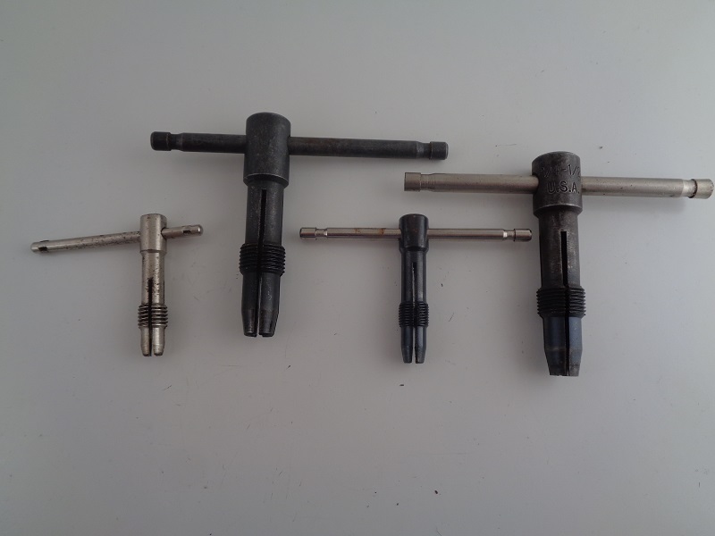• The T-handle tap wrench has jaws centered around the tap that are held tight against it via a collet system. Most of them are built basically the same no matter the who makes it. However, due to material and workmanship, some 'feel' better than others.