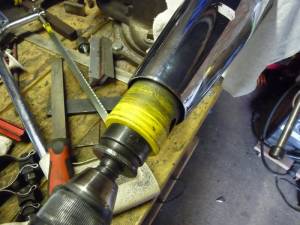 Removing an exhaust baffle with a hole saw. 8)