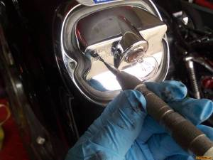 Drilling out exhaust baffle with a hole saw and extension. 7)