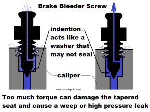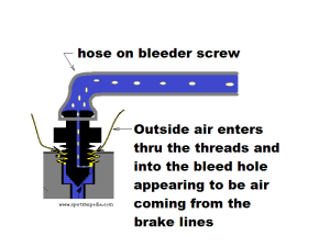 - The threads between the bleeder and caliper can allow atmosphere to enter them which can be sucked up into the hose.