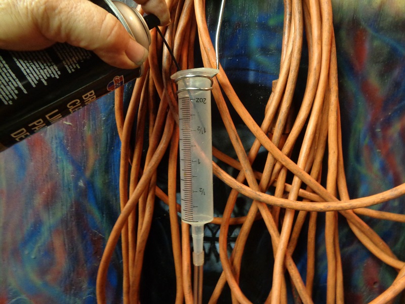 - Fill the syringe with new brake fluid and let stand for 5 minutes or so for the bubbles to rise out of the syringe / tube. 16)