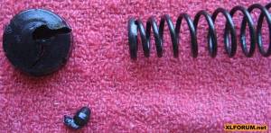 - The new cup has a tit on it that goes into the center hole of the washer that is welded to the end of that spring.