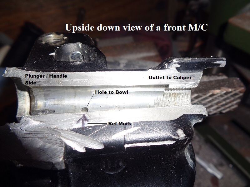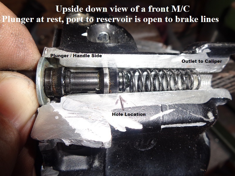Clear them with a pin, a bristle from a wire brush, welding tip cleaner or other or the master cylinder will not transfer fluid properly. - The holes can be plugged up solid yet still look like there is nothing in them. 122)