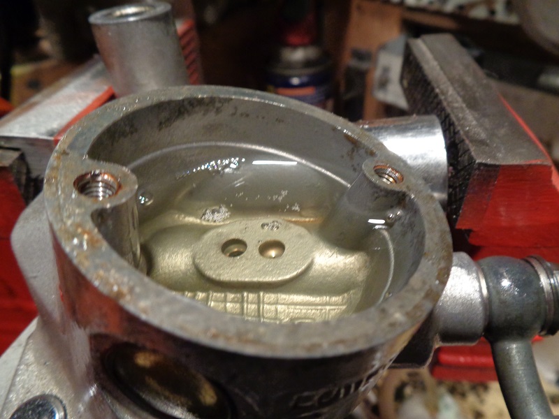 Remove (soak up) any old fluid with a rag or paper towel and wipe down the inside of the M/C.